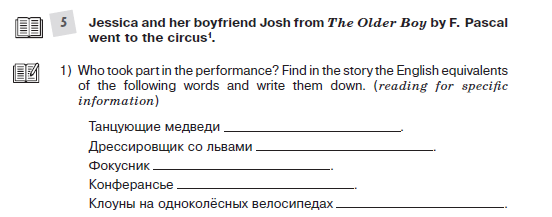 Для овладения стратегиями чтения представлены разнообразные упражнения. Вот некоторые примеры из пособия.