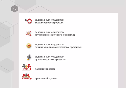 Учебник поддерживает освоение иностранного языка буквально во всех возможных формах коммуникации, учитывая современные педагогические технологии. Более того, для студентов не составляет трудности сориентироваться какая задача стоит перед ними на том или ином этапе.